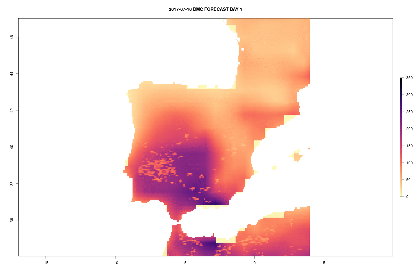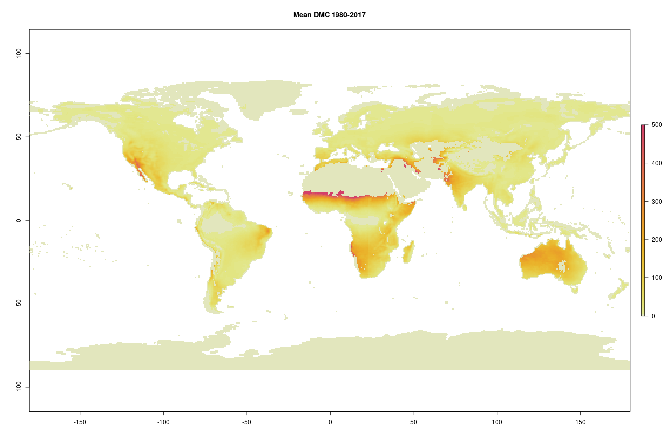 The Duff Moisture Code (DMC) is a numeric rating of the average moisture content of loosely compacted organic layers of moderate depth. This code gives an indication of fuel consumption in moderate duff layers and medium-size woody material. This is a variable of the Fire Weather Index rating system designed and adopted by the Canadian Forest Service. The dataset has been developed through a collaboration between the Joint Research Centre and ECMWF under the umbrella of the European Forest Fire Information (EFFIS) system and the Global Wildfires Information System (GWIS), a joint initiative of the GEO and the Copernicus Work Programs.