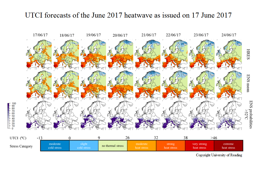The UTCI (Universal Thermal Climate Index) is a thermal comfort indicator. Defined as an equivalent temperature, it represents the thermal stress induced by the atmospheric environment on the human body. The UTCI is represented via a 10-level scale ranging from extreme cold stress to extreme heat stress. Each thermal stress level is associated to a specific and well-defined physiological response.