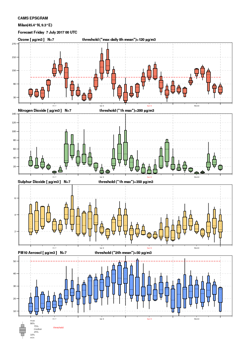 The CAMS regional air quality (RAQ) production is based on seven state-of-the-art numerical air quality models developed in Europe. Each model daily forecasts the concentrations of air pollutants (ozone, nitrogen dioxide, sulphur dioxide, carbon monoxide, particulate matters below 10 and 2.5 mm) in the lowest layers of the atmosphere with a 4-day lead time. Forecasts are combined via an ensemble approach in the CAMS regional Ensemble which is then delivered through the RAQ data service website.